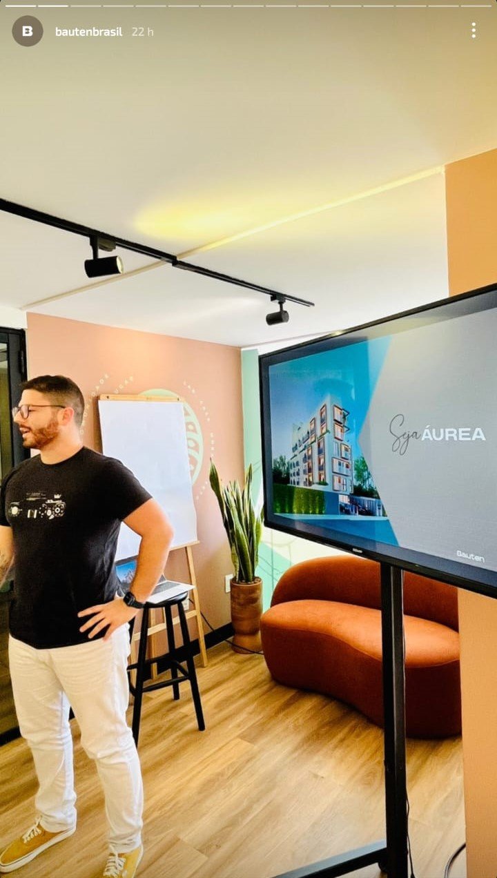 Treinamento ministrado pelo gestor comercial Gabriel Costa sobre os empreendimentos Reserva da Mata e Áurea da Construtora Bauten.